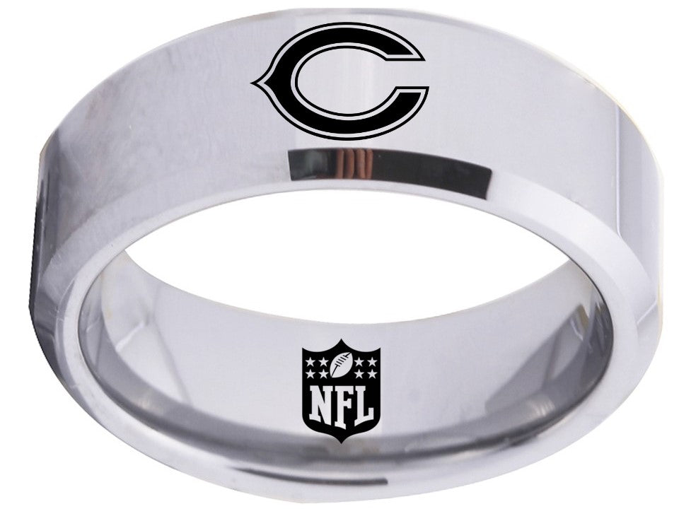 Chicago Bears Ring Silver 8mm Tungsten Wedding Ring Sizes 4 - 17 #chicagobears