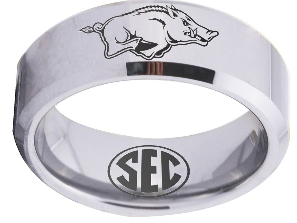 Arkansas Razorbacks Ring Silver Ring Tungsten Ring #arkansas #razorbacks