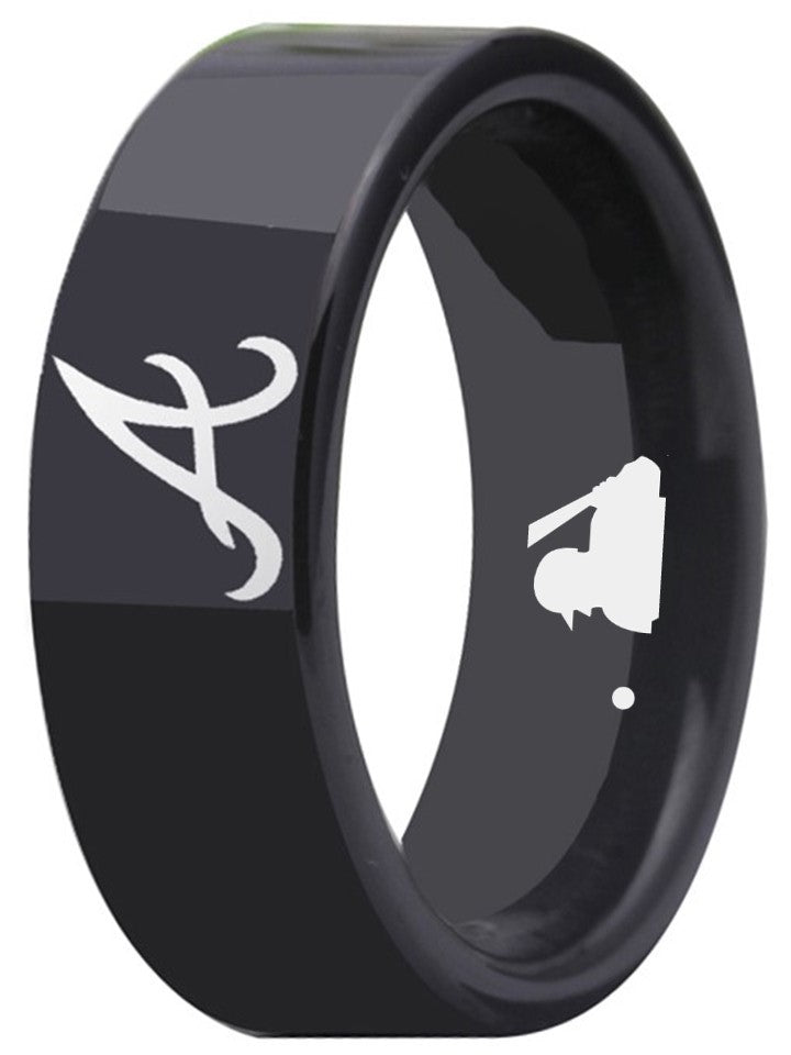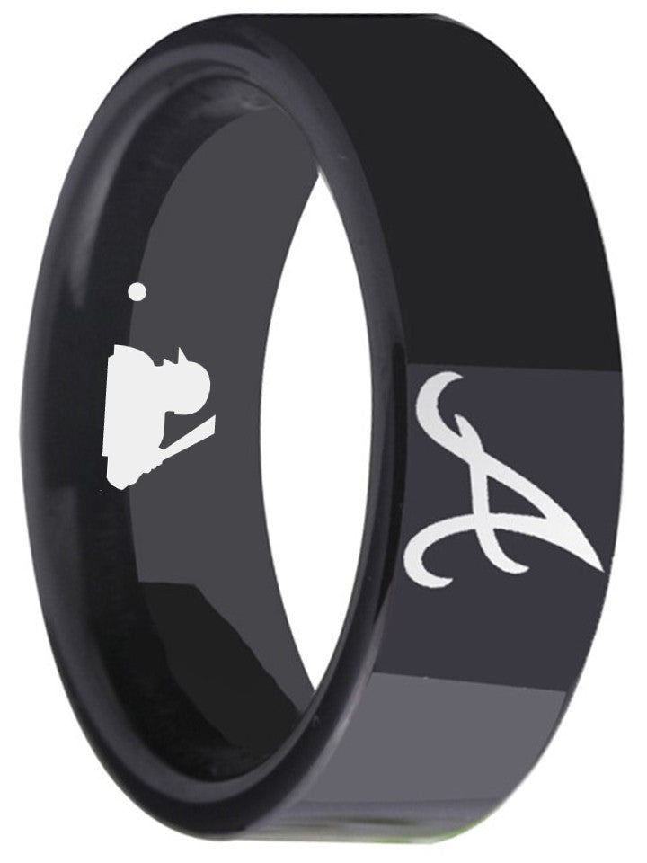 Atlanta Braves Ring MLB 8mm Black Tungsten Ring Sizes 6 - 13