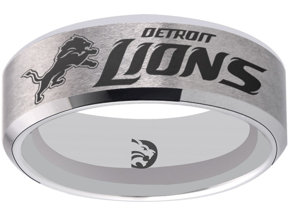 Capture the true essence of Detroit Lions fandom with our exquisite matte silver Detroit Lions Wedding Band. Crafted with precision and passion, this stylish ring features the iconic team logo in striking black against a sleek silver backdrop. Made of durable tungsten, it symbolizes strength and everlasting commitment—a perfect representation of your love and loyalty. Personalize this ring with custom engravings, adding a touch of sentiment to commemorate your gift. Available in sizes 6-13, this exclusive wedding band is the ultimate choice for devoted Lions fans looking to celebrate their love and team spirit in a truly unique way.