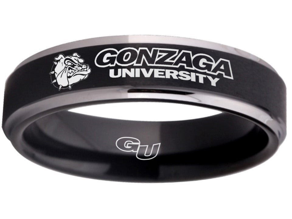 Gonzaga Bulldogs Ring Black & Silver 6mm Wedding Ring Sizes 5 - 13 #gonzaga
