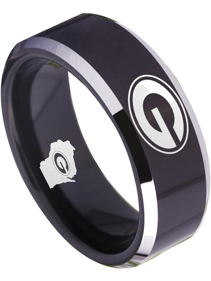 Green Bay Packers Ring Black & Silver Wedding Ring | Sizes 4-17
