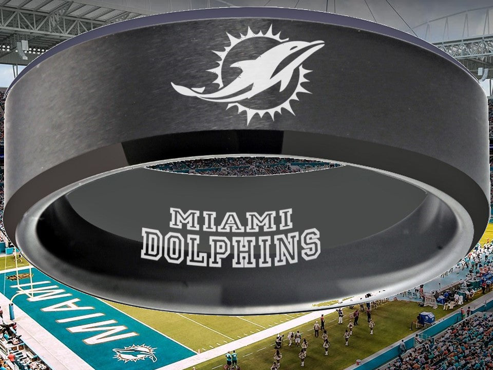 Miami Dolphins Ring matte Black Tungsten Wedding Ring #miami #dolphins #miamidolphins