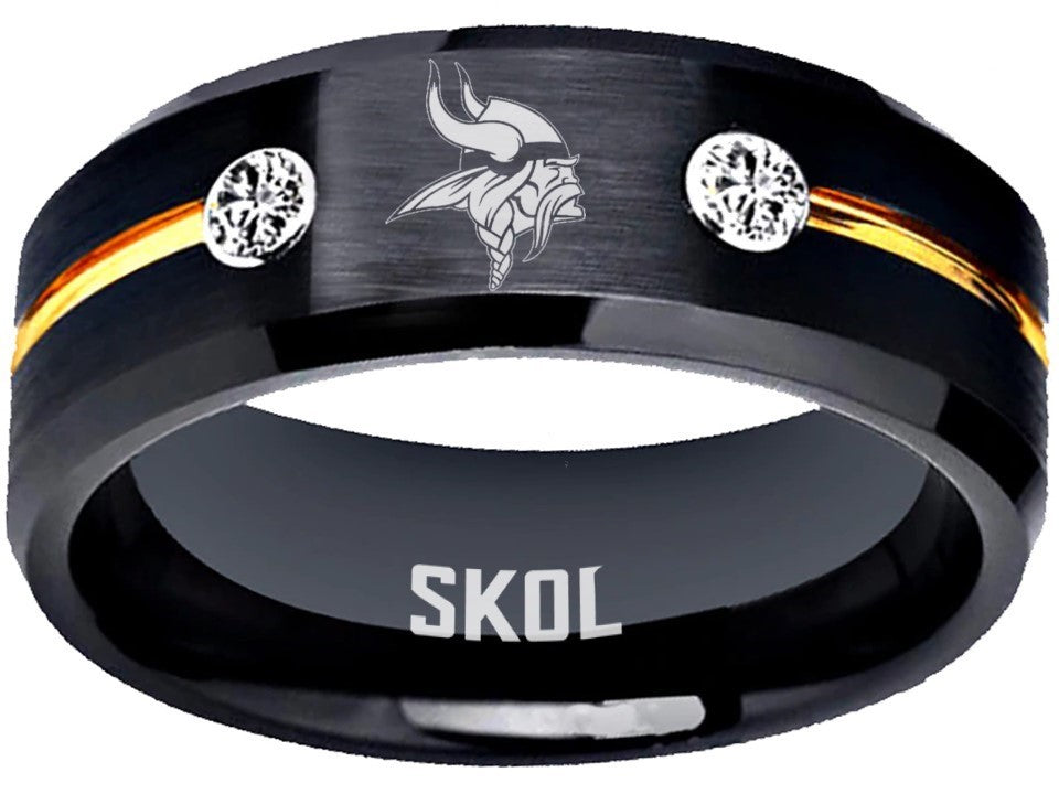 Minnesota Vikings Ring Black & Gold CZ Wedding Band | Sizes 6-13 #vikings #skol #nfl