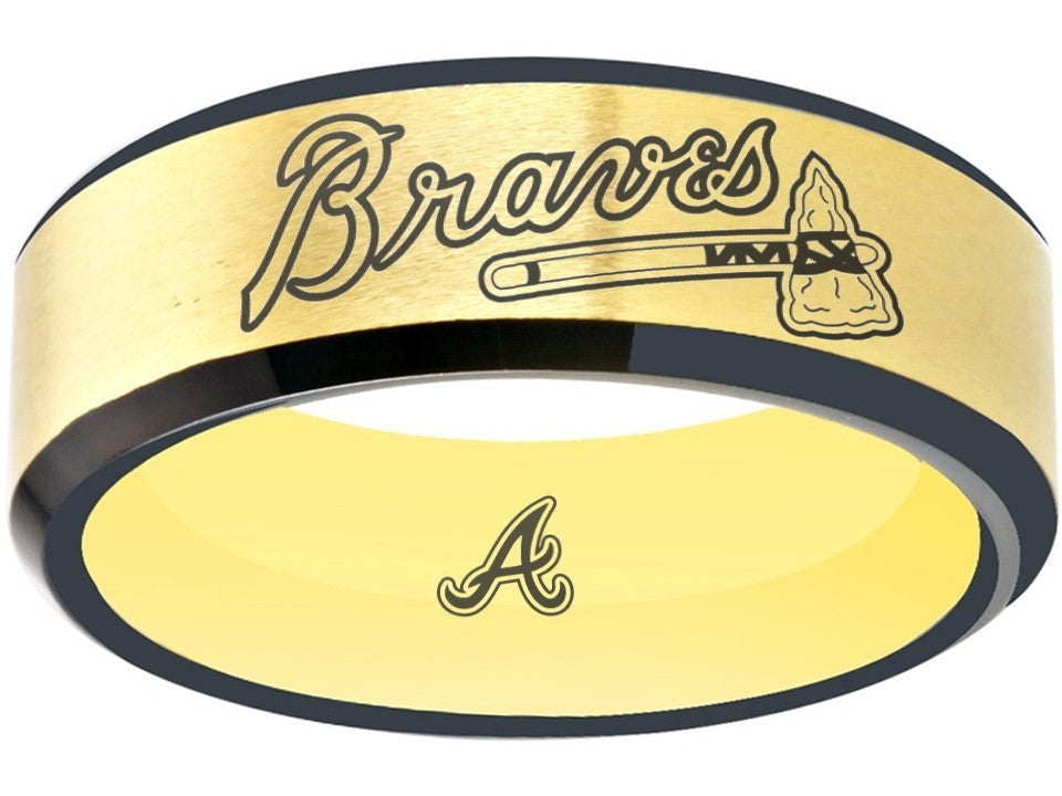 Atlanta Braves Ring Matte Gold & Black Tungsten Wedding Ring Sizes 6 - 13 #atlanta #braves