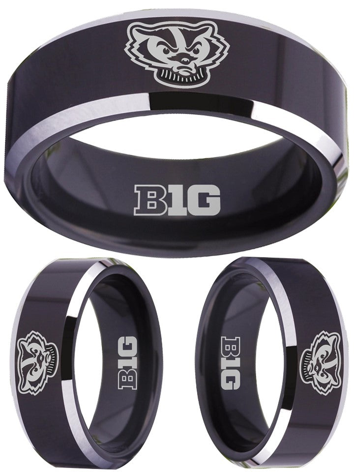 Wisconsin Badgers Ring Black Ring Tungsten NCAA #badgers